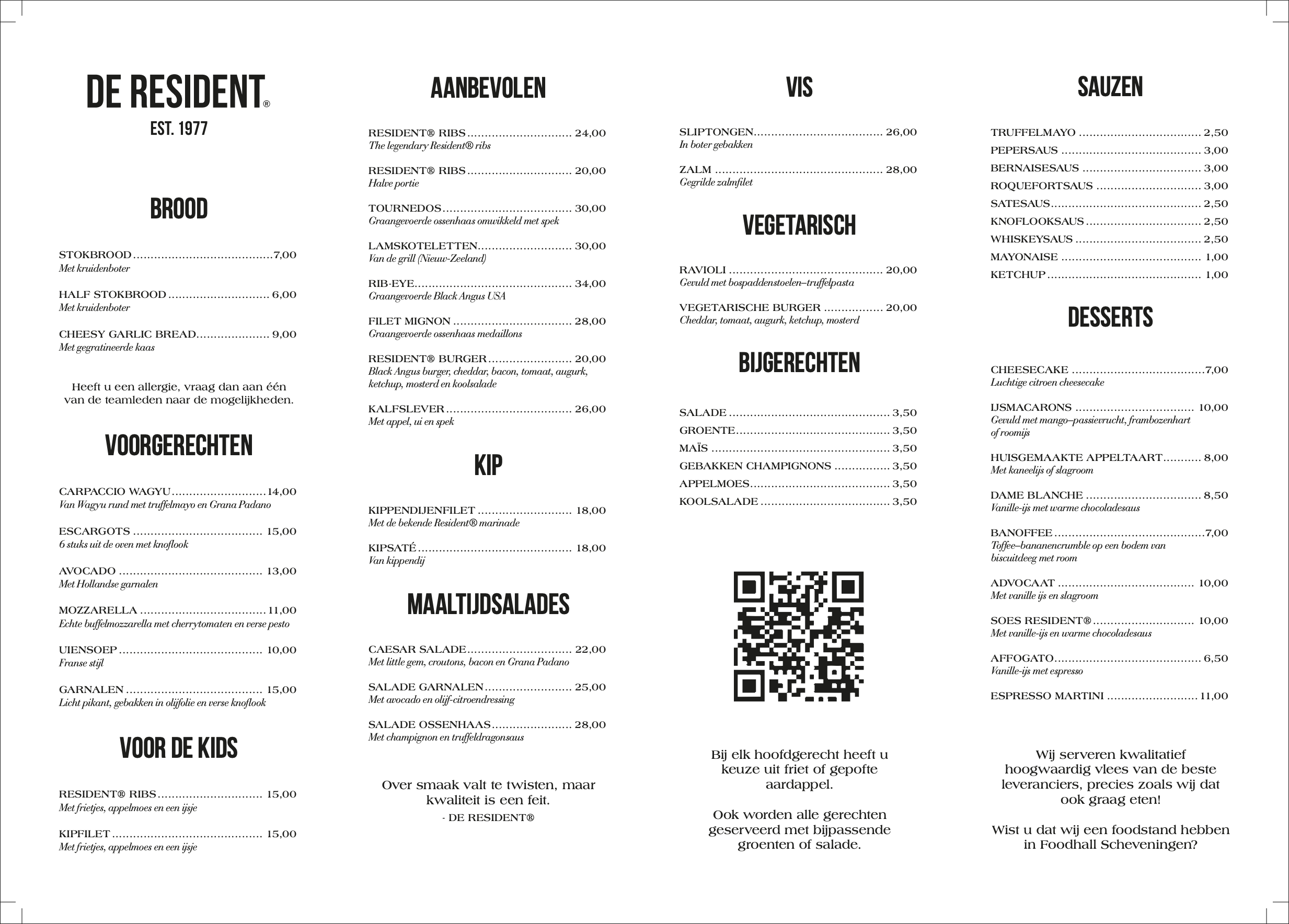 De Resident® bedient sinds 1977 zijn gasten elke dag met plezier, en stelt als voorwaarde kwaliteit in zowel gerechten als service.